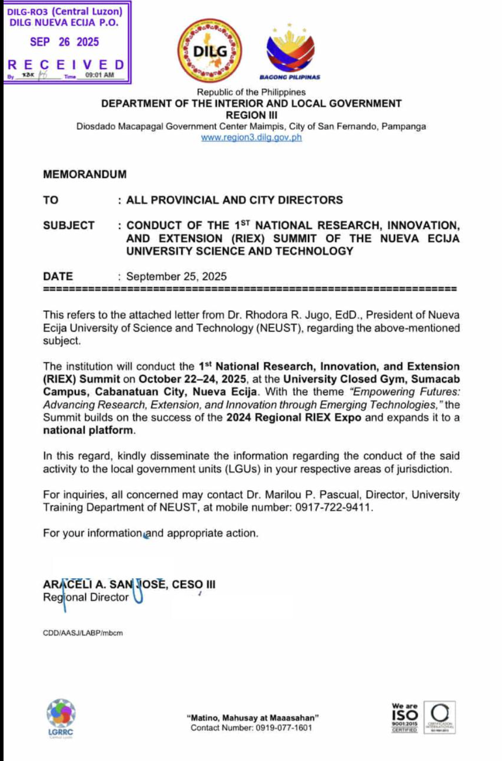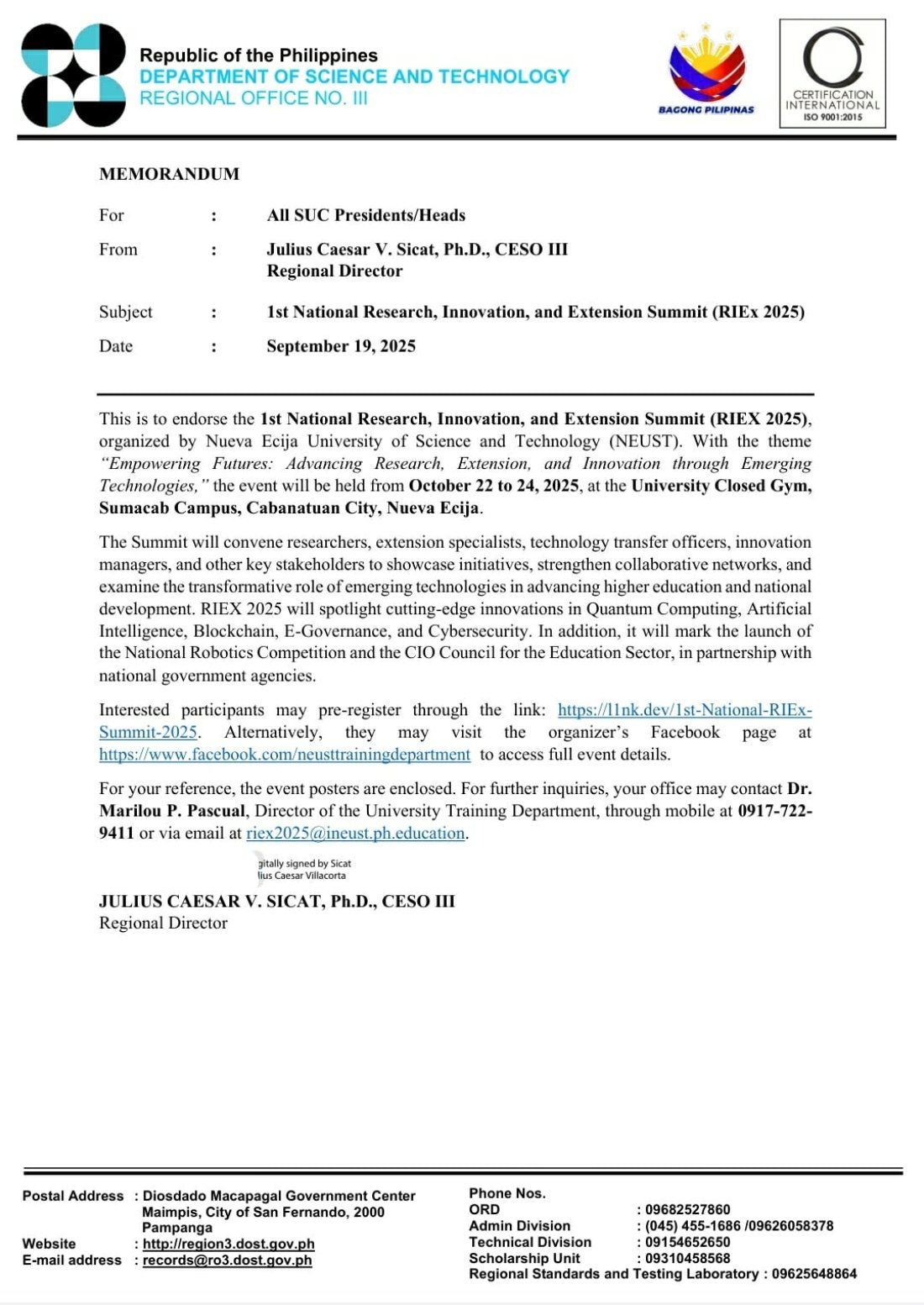 Endorsement October 8, 2025October 7, 2025 No Comment on DOST Region 3 Endorsement: RIEX Emerging Tech Summit 2025 DOST Region 3 Endorsement: RIEX Emerging Tech Summit 2025